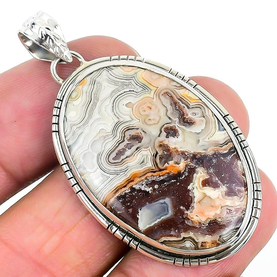 Crazy Lace Agate Stone Sterling Silver Sister Handmade Wedding Pendant Jewelry