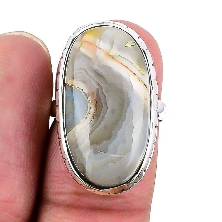 Crazy Lace Agate Stone Sterling Silver Statement Wife New Ring Jewelry Size 6.5