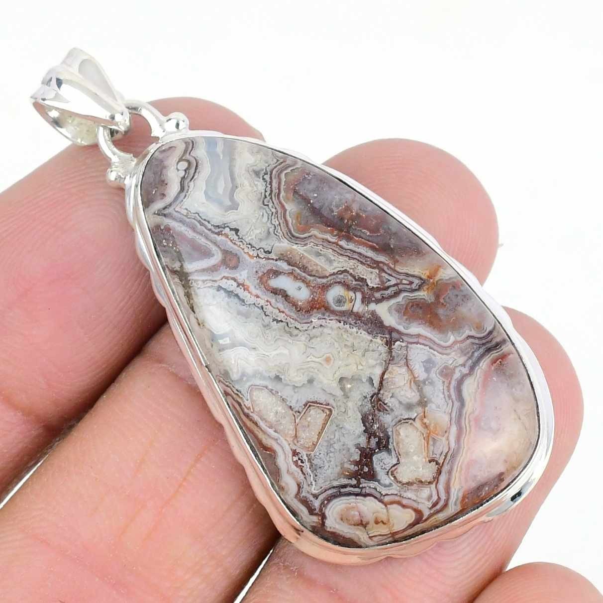 Crazylace agate Gemstone Engagement Mother Pendant Jewelry Solid Sterling Silver