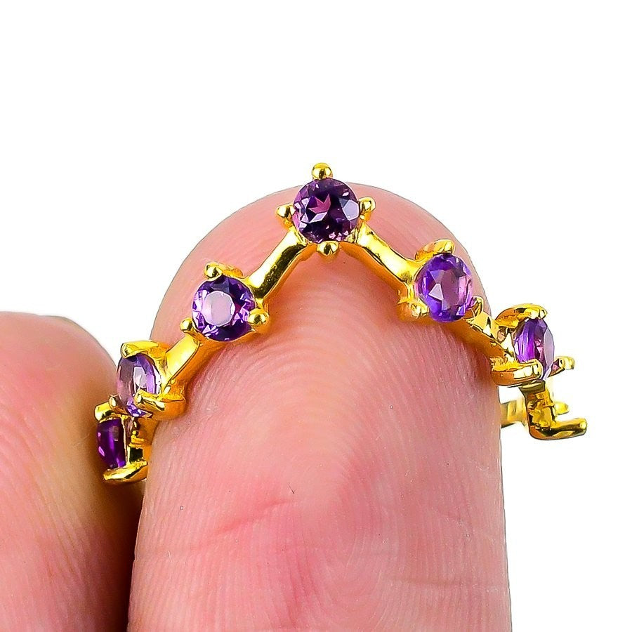 Crown Chakra Amethyst Stone Solid Sterling Silver Statement Ring Jewelry US 7