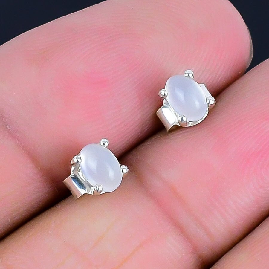 Crown Chakra Moonstone Stone 925 Silver Birthday Stud Post Wife Earrings Jewelry