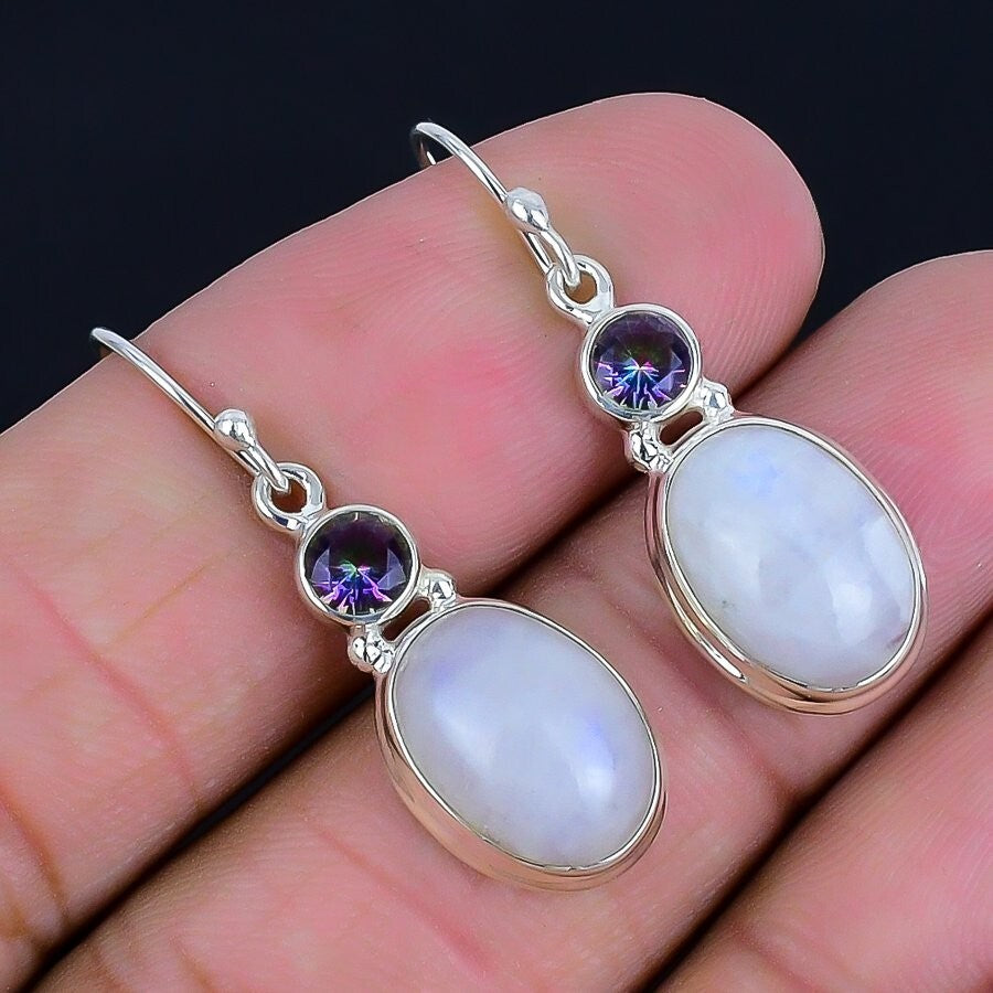 Crown Chakra Moonstone Stone Solid Silver Wedding Mother Dangle Hook Earrings