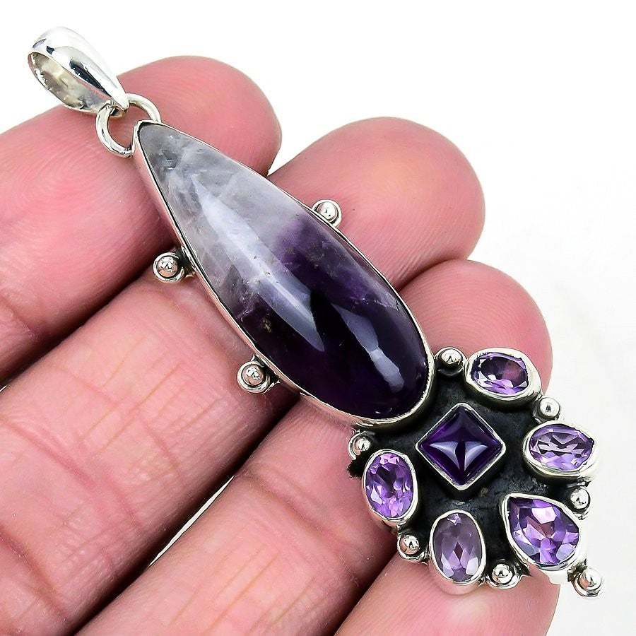 Crown Chakra Natural Chevron Amethyst 925 Sterling Silver Engagement New Pendant