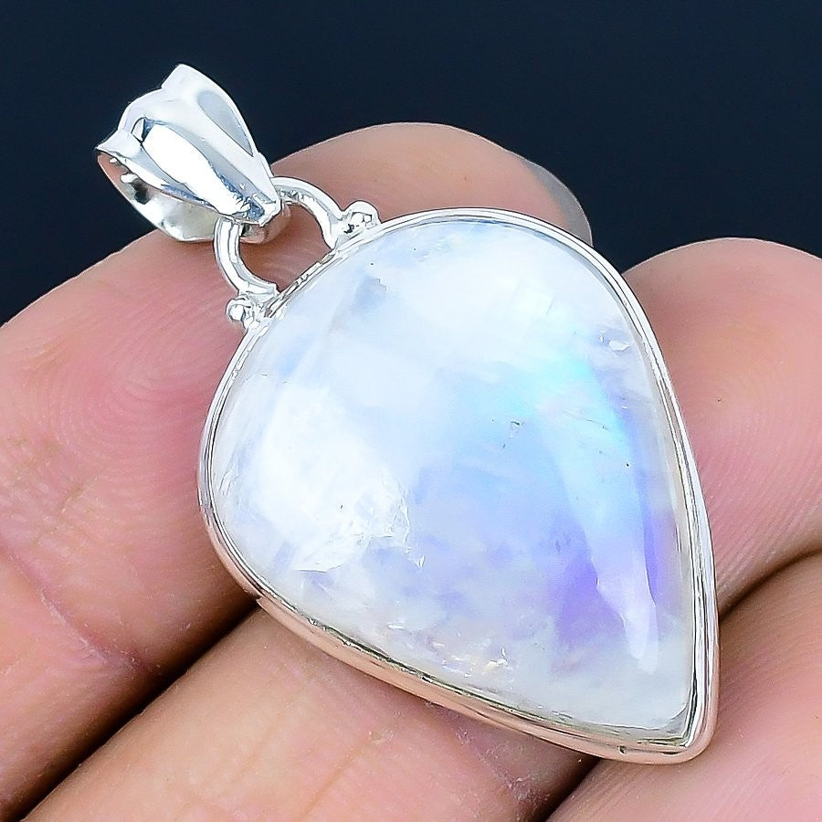 Crown Chakra Natural Rainbow Moonstone 925 Silver Best Daughters Gift Pendant