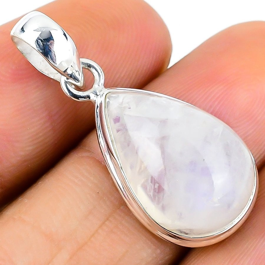 Crown Chakra Natural Rainbow Moonstone 925 Silver Handcrafted Daughter Pendant