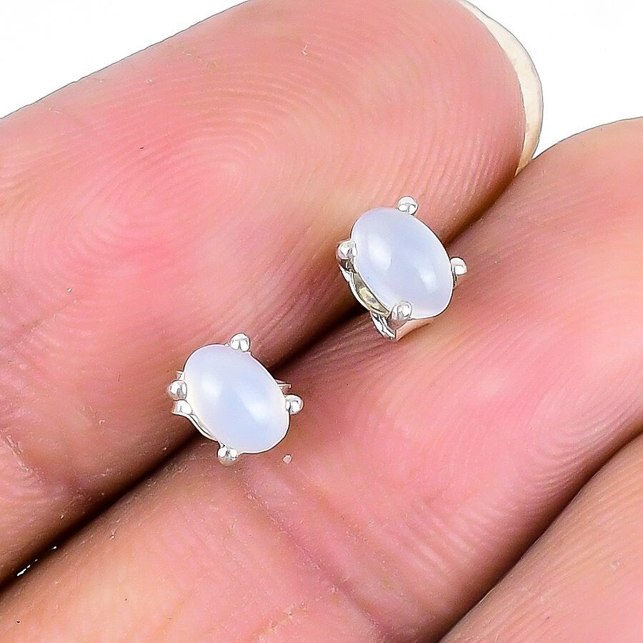 Crown Chakra Natural Rainbow Moonstone 925 Silver Trendy Stud Leverback Earrings