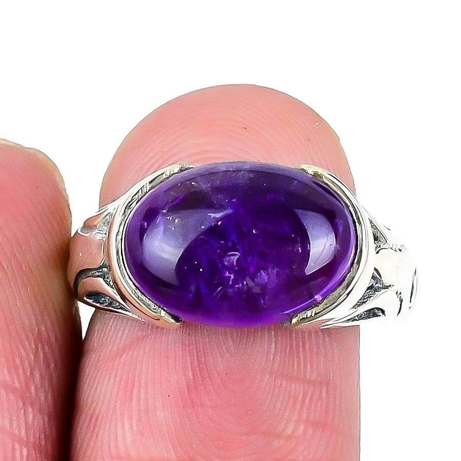 Crown Chakra Natural Sage Amethyst Statement Engagement Ring Size 8 Solid Silver