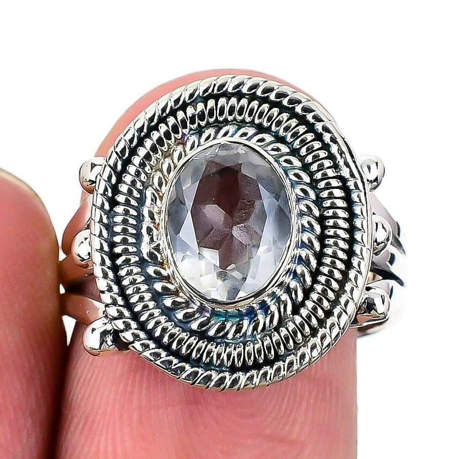 Crown Chakra Natural White Topaz Anniversary Statement Ring 925 Sterling Silver