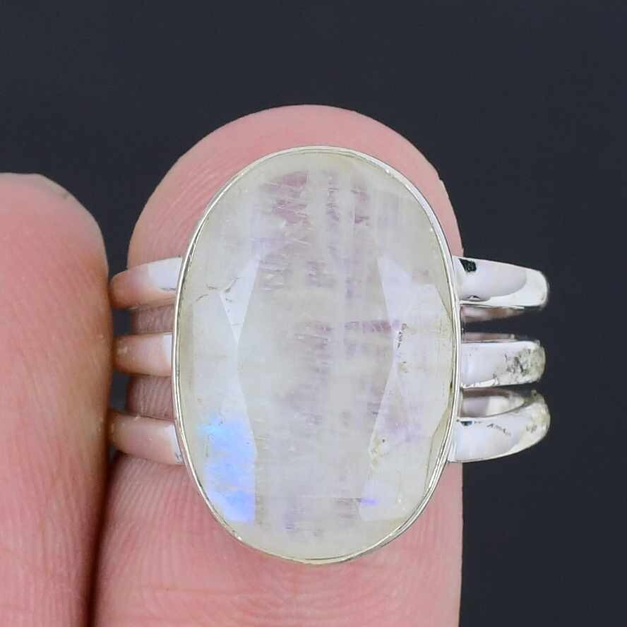 Crown Chakra Rainbow moonstone faceted Stone Sterling Silver Cluster Ring Size 9