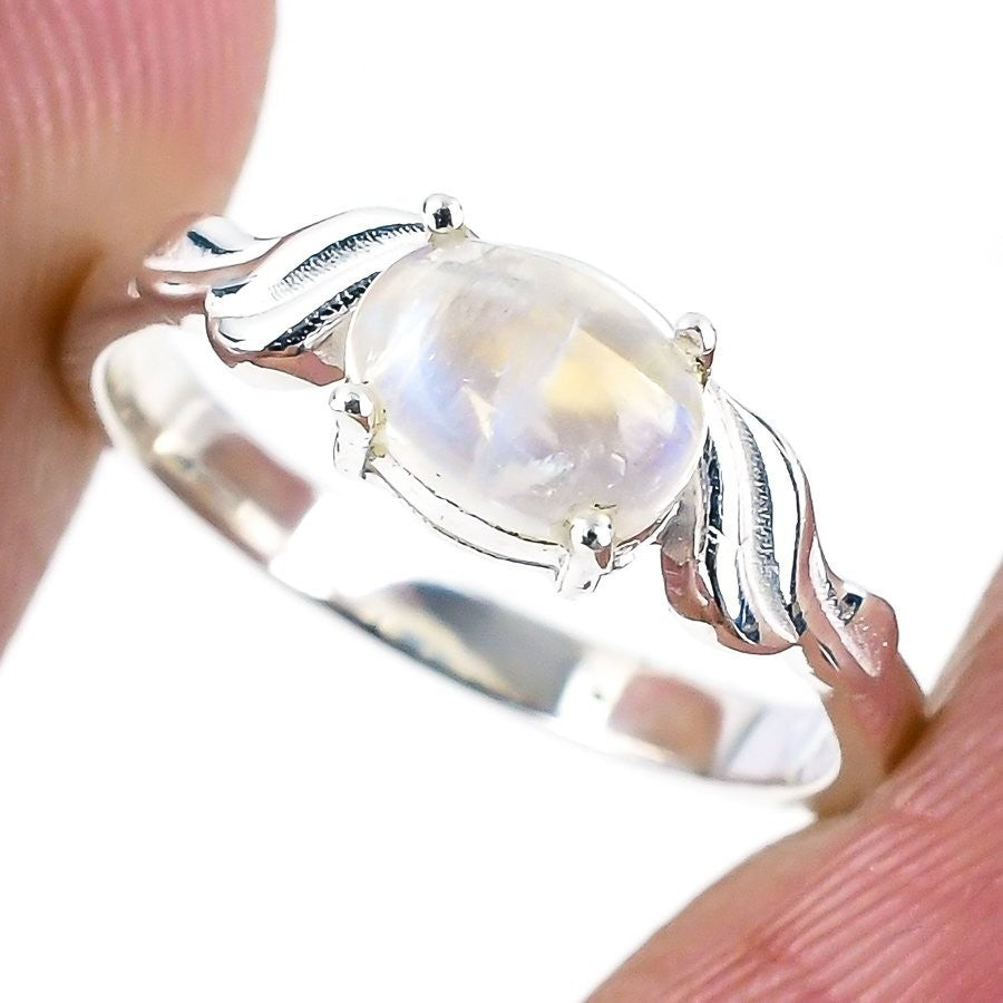 Crown Chakra Rainbow Moonstone Gemstone Cluster Unique Ring Size 6 925 Silver