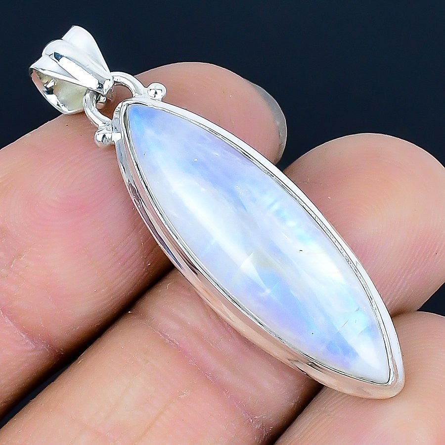Crown Chakra Rainbow Moonstone Gemstone Sterling Silver Birthday Artisan Pendant