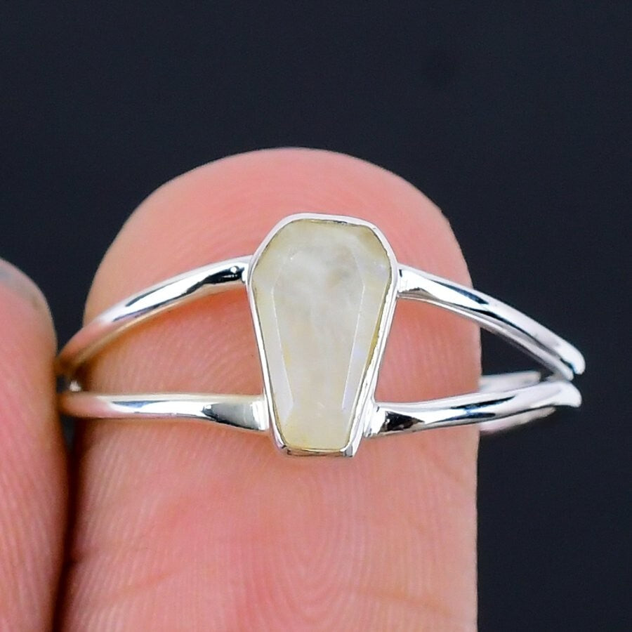 Crown Chakra Rainbow Moonstone Stone 925 Sterling Silver Statement Wife New Ring