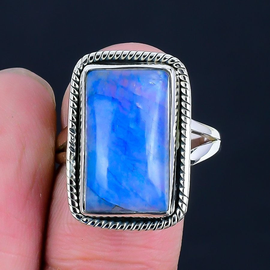 Crown Chakra Rainbow Moonstone Stone Cluster New Ring Size 9.5 925 Solid Silver