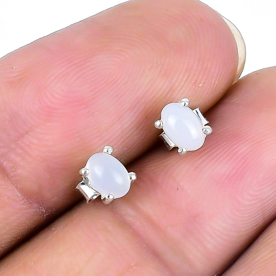 Crown Chakra Rainbow Moonstone Stone Wedding Stud Post Earrings 925 Solid Silver