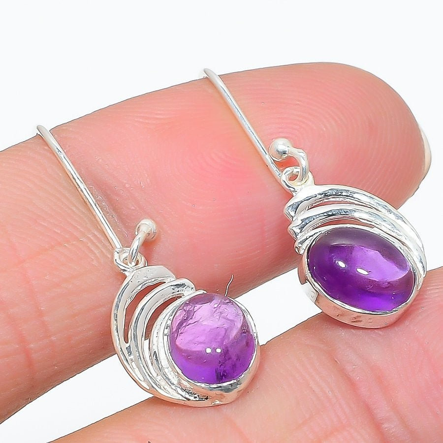 Crown Chakra Sage Amethyst Gemstone Sterling Silver Wife Drop Dangle Earrings