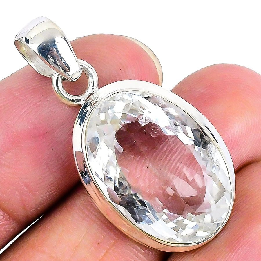 Crystal Gemstone Solid Sterling Silver Anniversary Engagement Bezel Wife Pendant