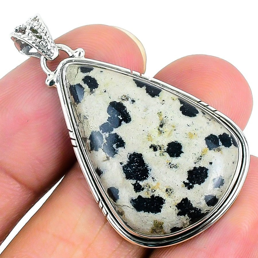 Dalmation Jasper Gemstone 925 Silver Mother Wedding Bezel Trendy Pendant Jewelry