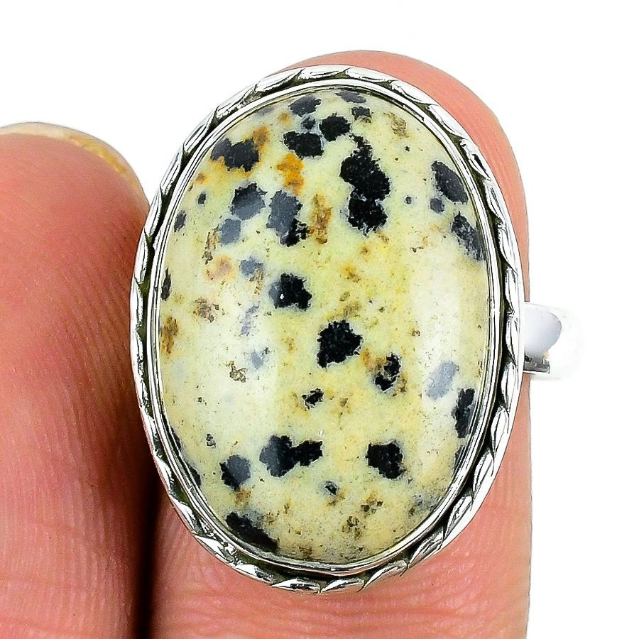 Dalmation Jasper Stone New Statement Ring Jewelry Size 7.5 Solid Sterling Silver