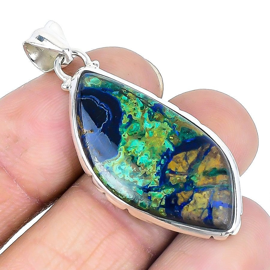 Daughters Day Deal Azurite Malachite Stone 925 Solid Silver New Mother Pendant