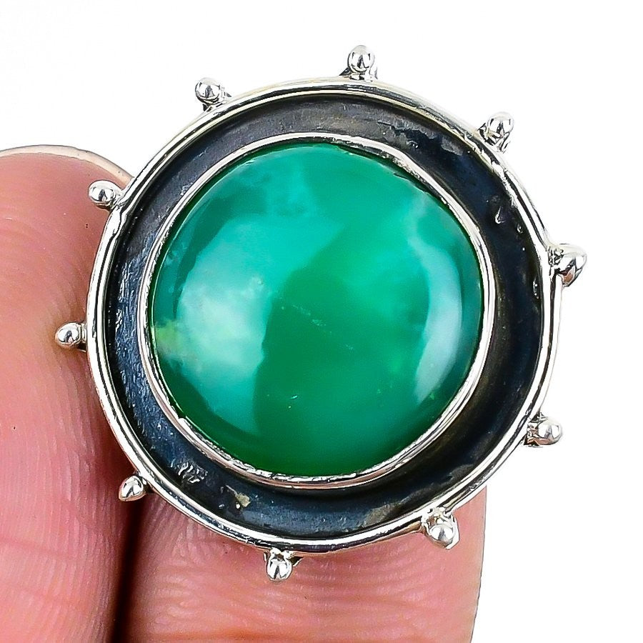 Daughters Day Deal Chrysophrase Stone 925 Silver Statement Mother Ring US 7.5