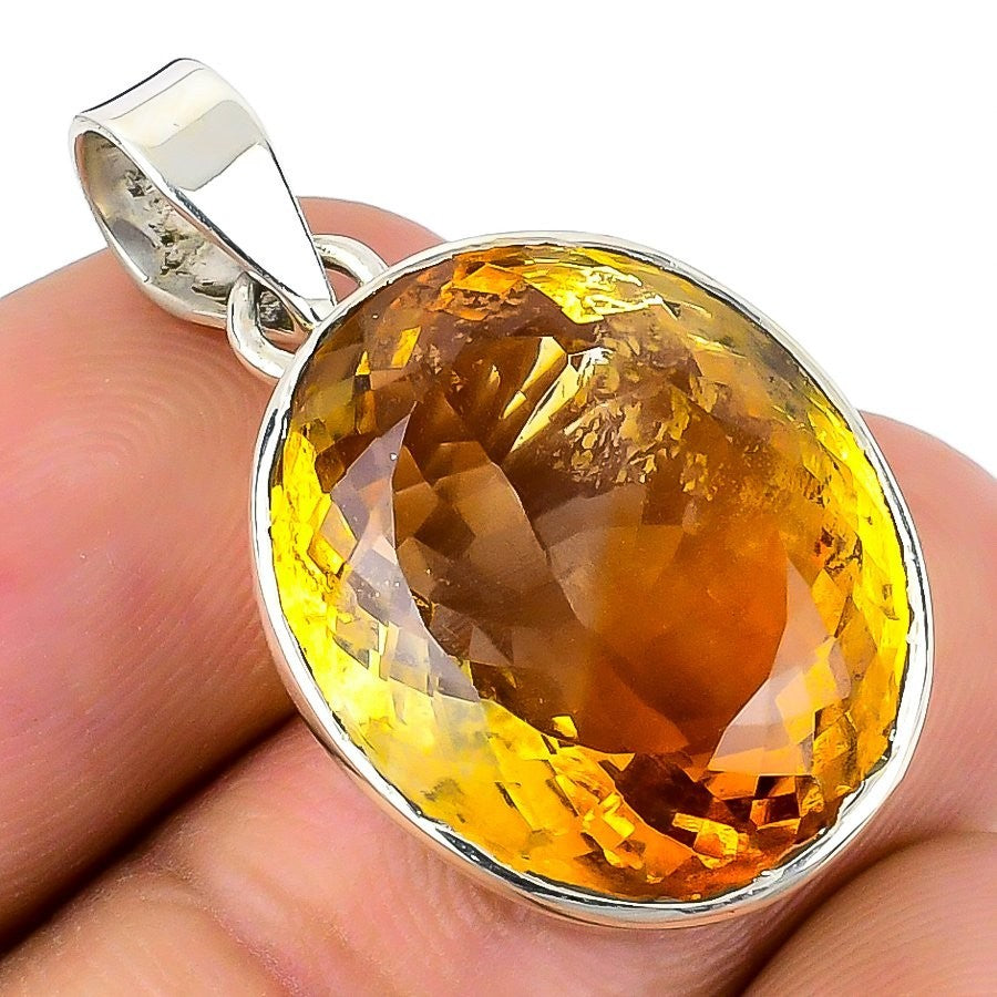 Daughters Day Deal Citrine Gemstone Solid Sterling Silver Ethnic Wedding Pendant