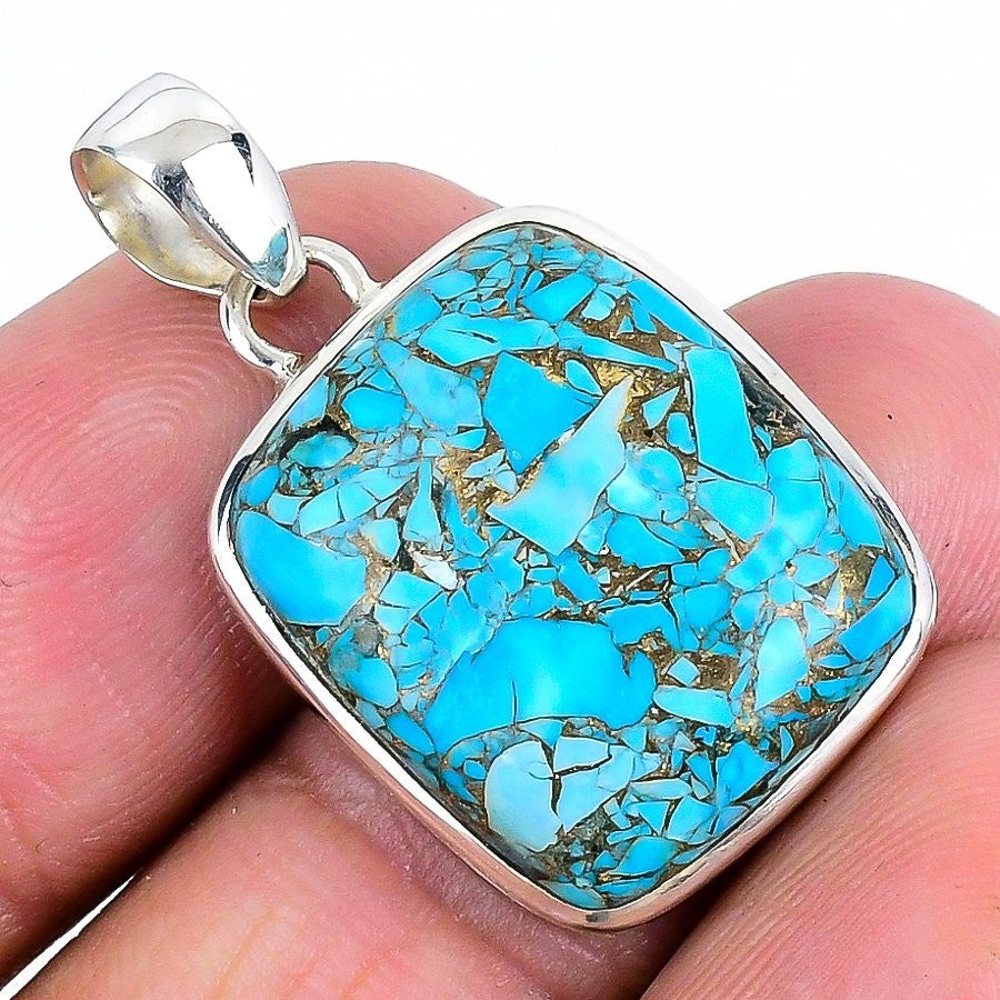 Daughters Day Deal Copper Blue Turquoise Stone Pendant Jewelry Sterling Silver