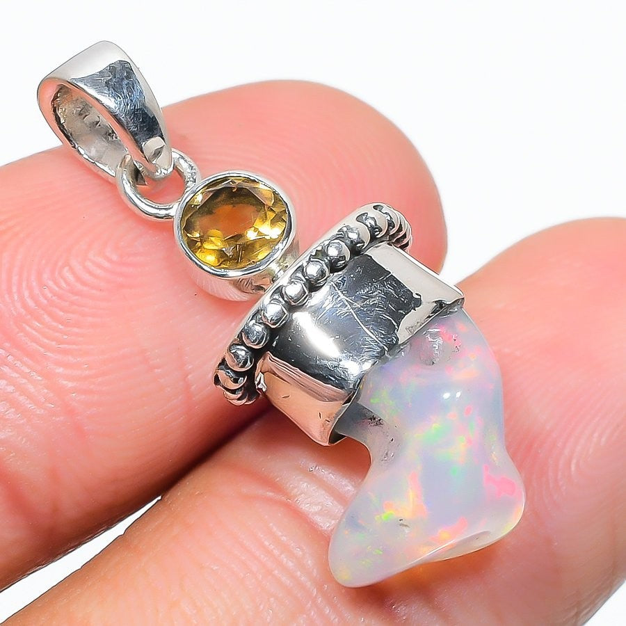 Daughters Day Deal Ethiopian Opal Stone Solid Silver Mother Boho Pendant Jewelry