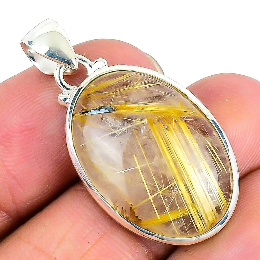 Daughters Day Deal Golden Rutile Gemstone Sister Birthday Pendant Solid Silver