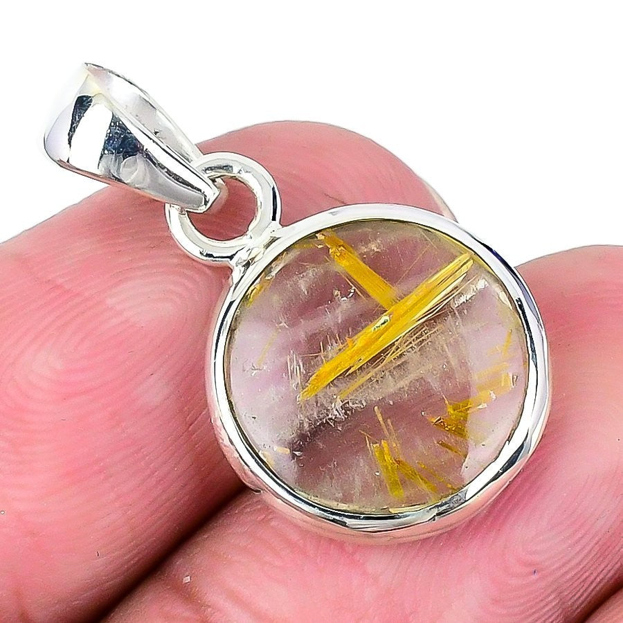 Daughters Day Deal Golden Rutile Stone Solid Silver Unique Channel Set Pendant