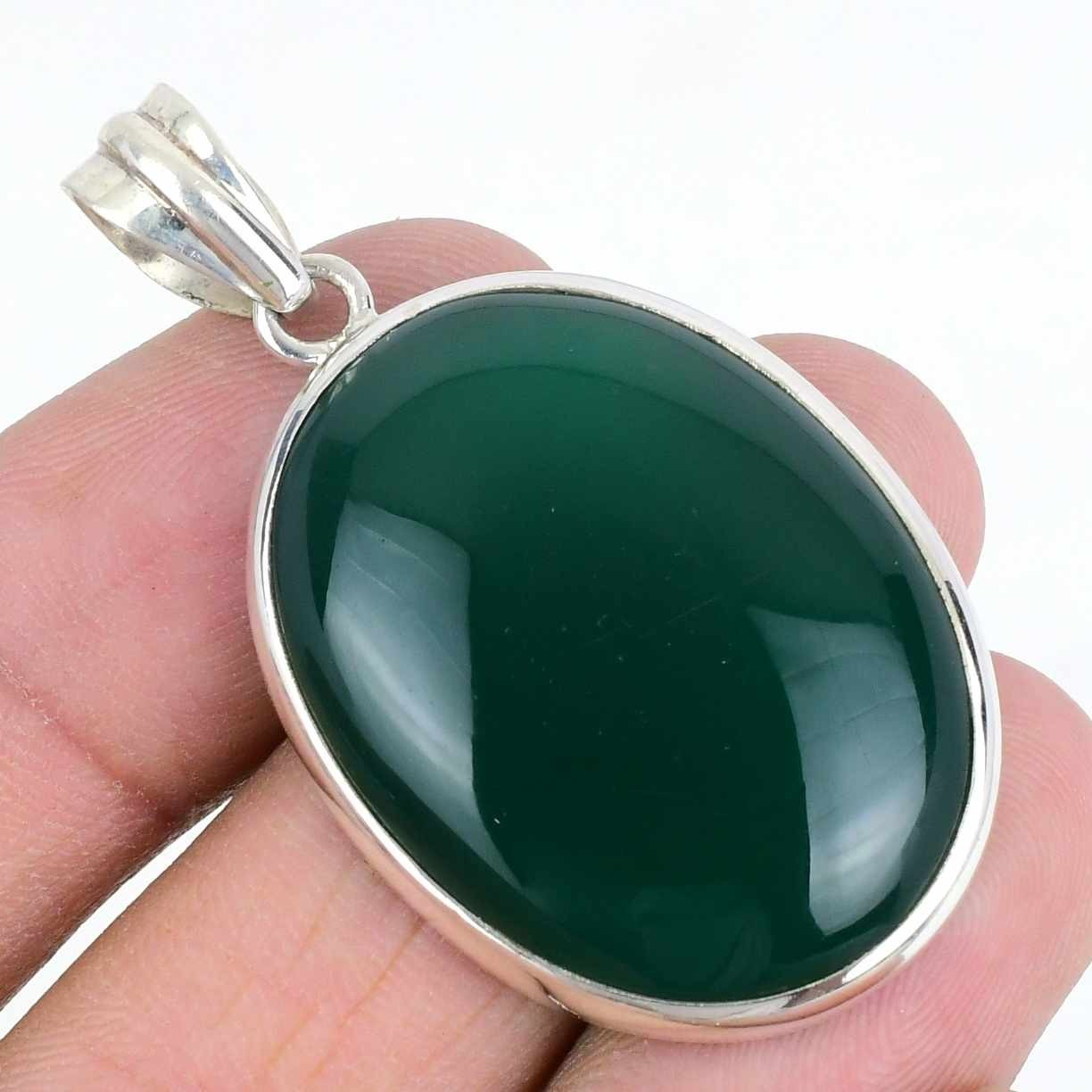 Daughters Day Deal Green Onyx Stone Solid Silver Sister Elegant Pendant Jewelry