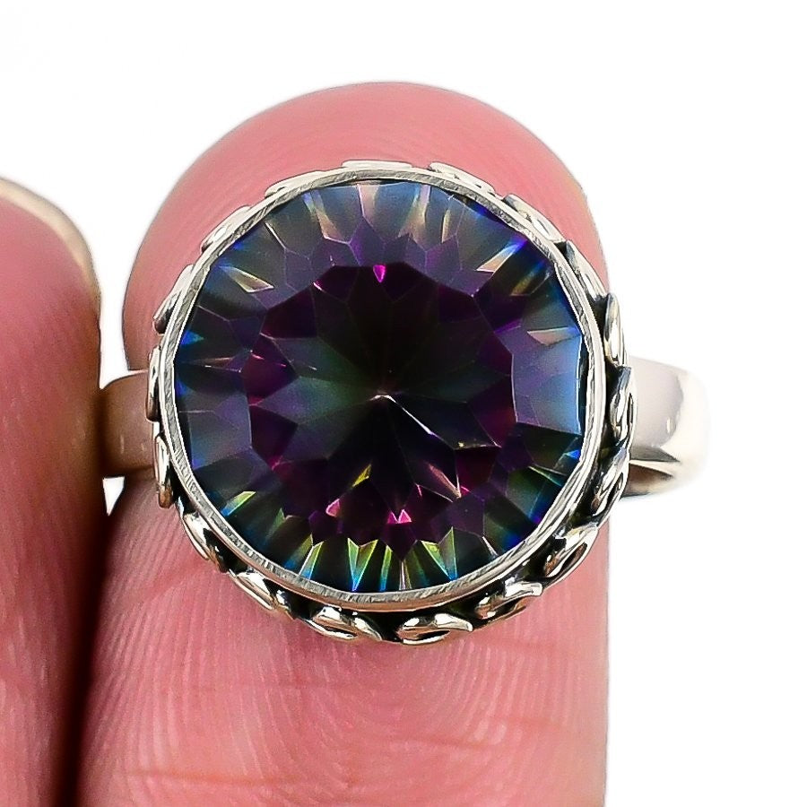 Daughters Day Deal Mystic Topaz Stone 925 Silver Statement Bezel Wife Ring US 8
