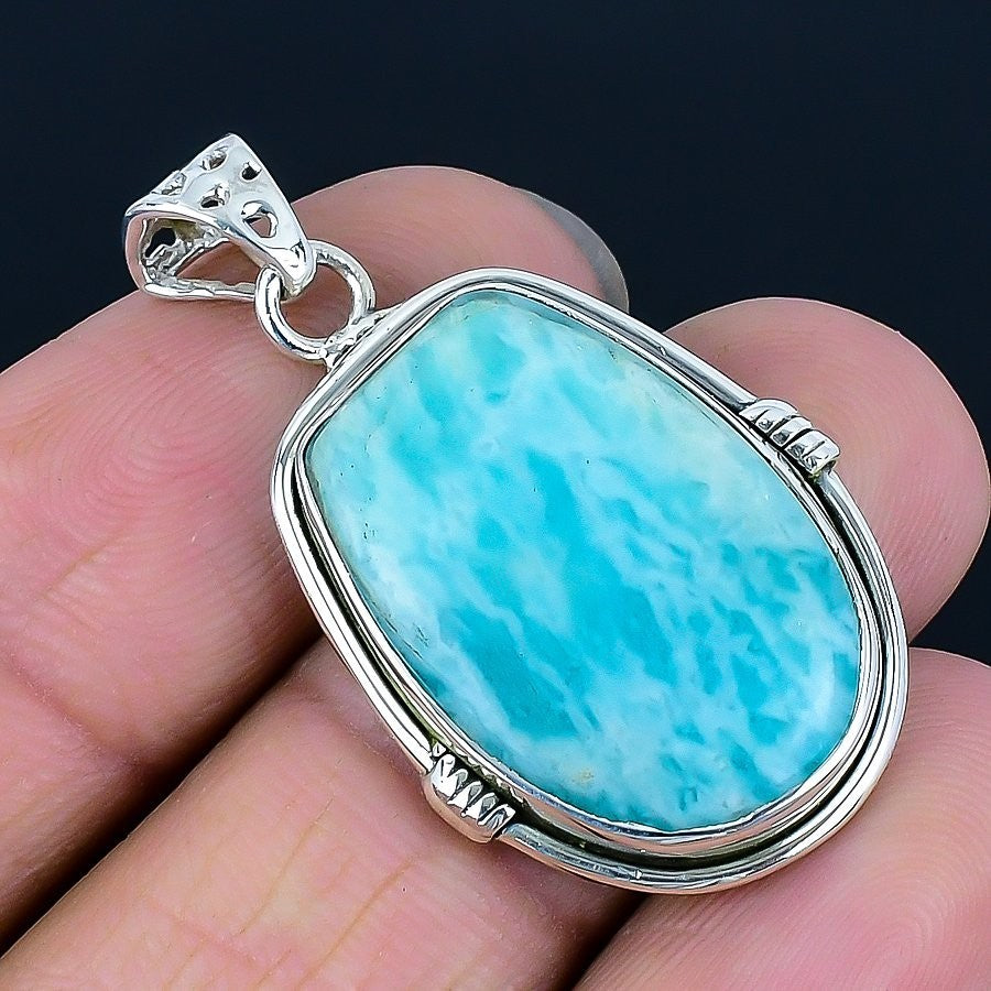 Daughters Day Deal Natural Amazonite 925 Sterling Silver Wedding Pendant Jewelry
