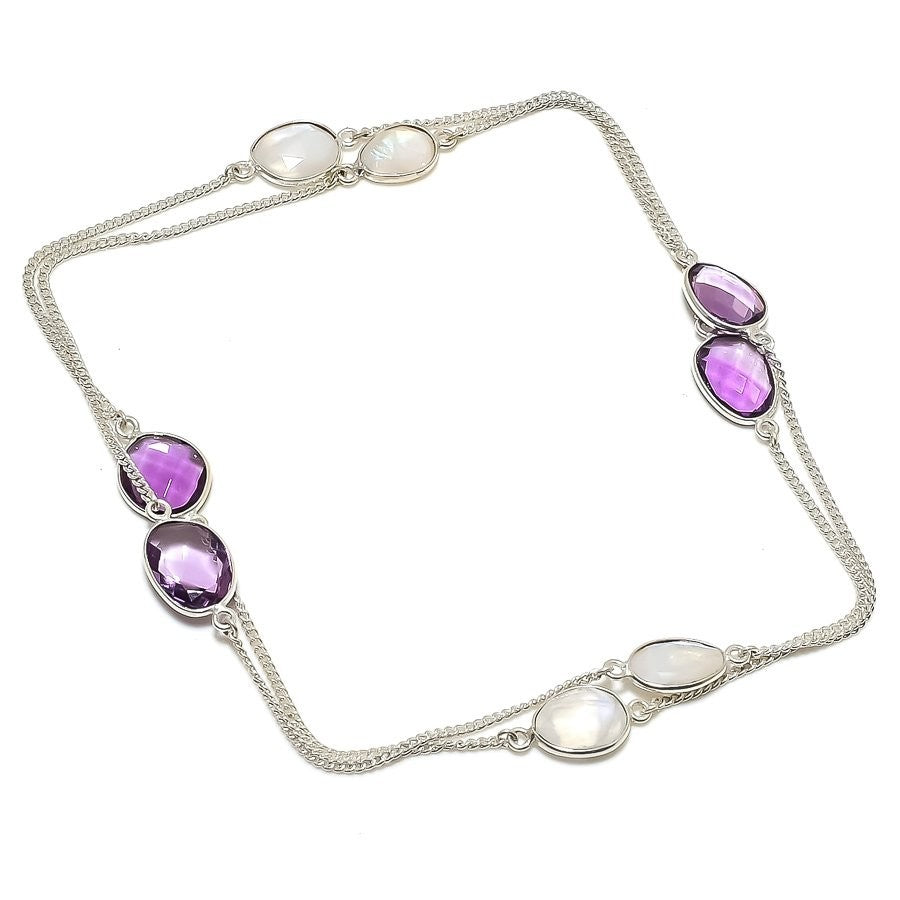 Daughters Day Deal Natural Amethyst 925 Sterling Silver Chain Wedding Necklace