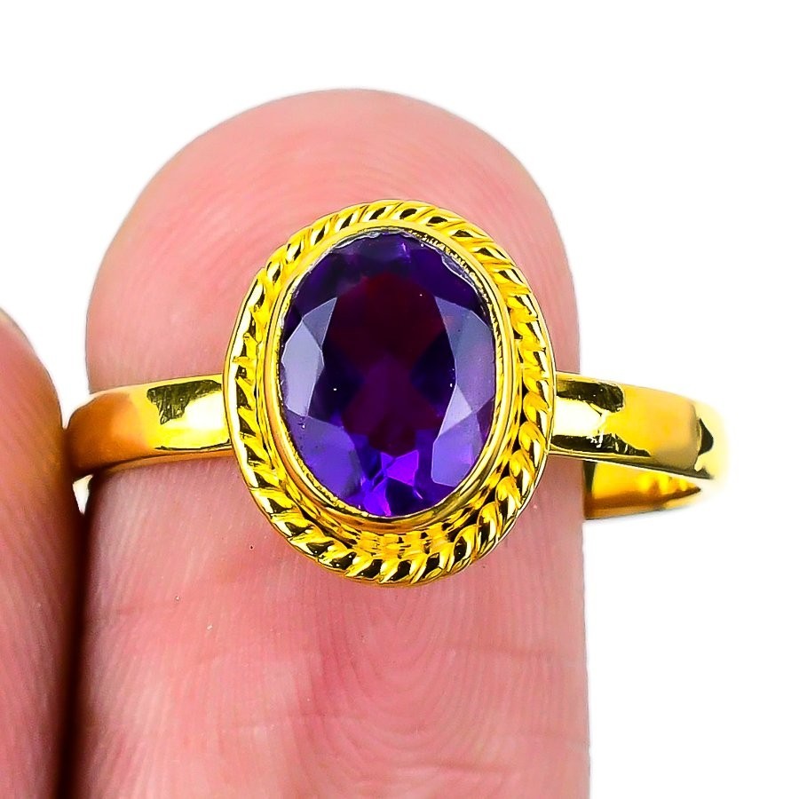 Daughters Day Deal Natural Amethyst Solid Silver Statement February Ring US 10