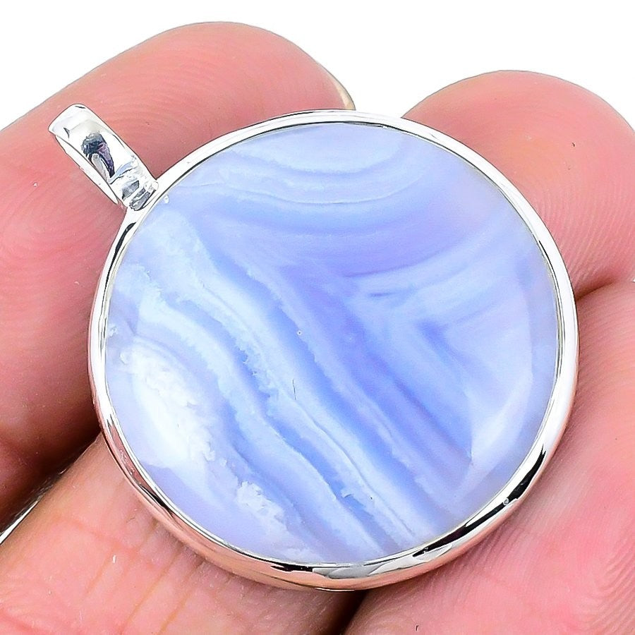 Daughters Day Deal Natural Blue Lace Agate 925 Silver Handcrafted Boho Pendant