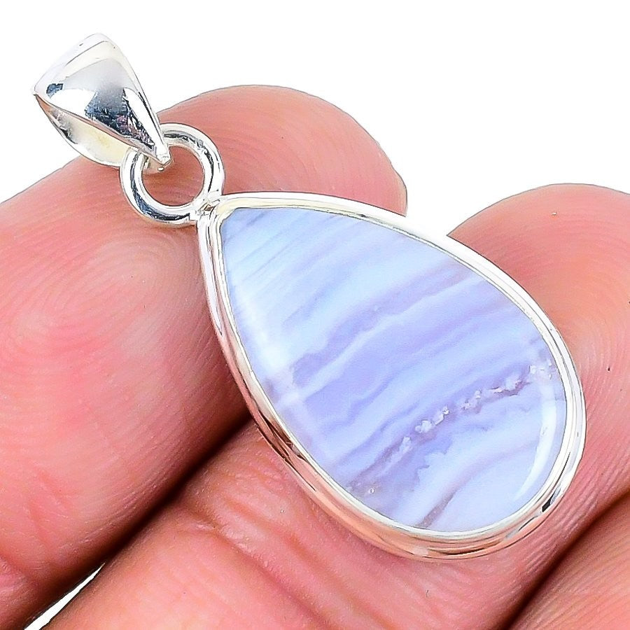 Daughters Day Deal Natural Blue Lace Agate 925 Solid Silver Boho Pendant Jewelry