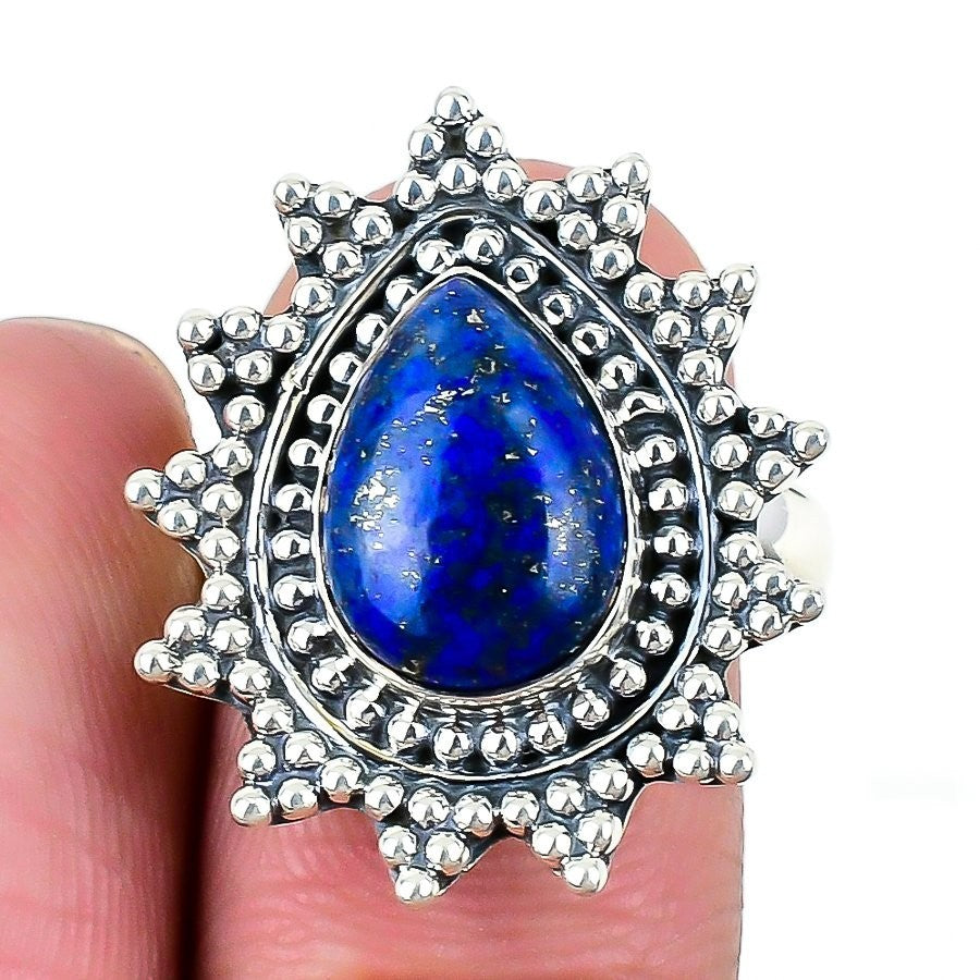 Daughters Day Deal Natural Lapis Lazuli 925 Solid Silver Statement Ring Jewelry