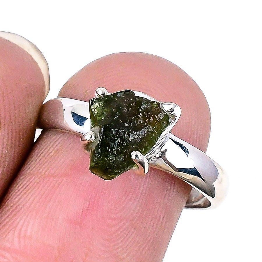 Daughters Day Deal Natural Moldavite Quartz 925 Silver Statement Boho New Ring