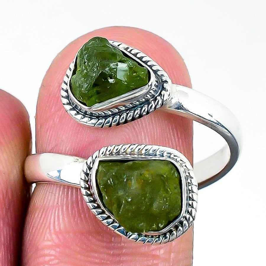 Daughters Day Deal Natural Peridot Rough 925 Silver Ethnic Band New Ring US 8