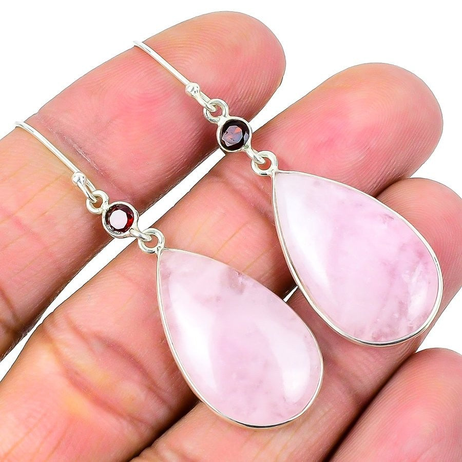 Daughters Day Deal Natural Rose Quartz 925 Solid Silver New Drop Sister Earrings