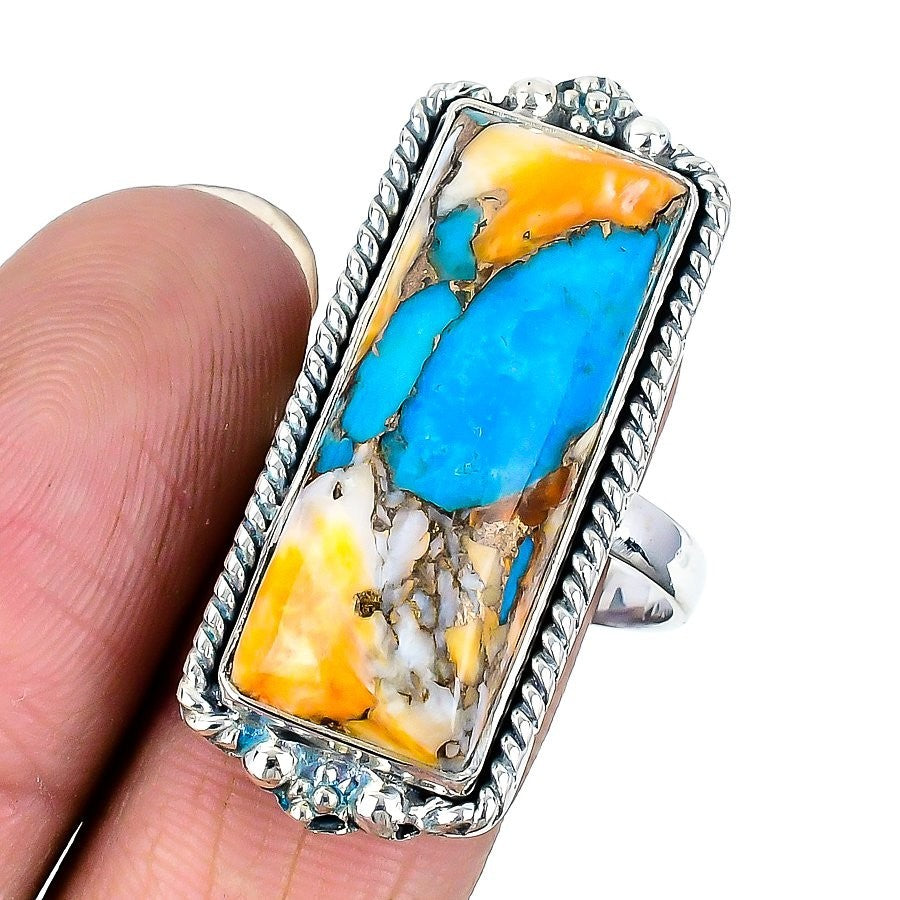 Daughters Day Deal Natural Spiny Oyster Solid Silver Boho Statement Ring Size 10