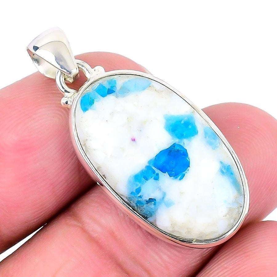 Daughters Day Deal Neon Blue Apatite Gemstone Solid Silver Mother Ethnic Pendant