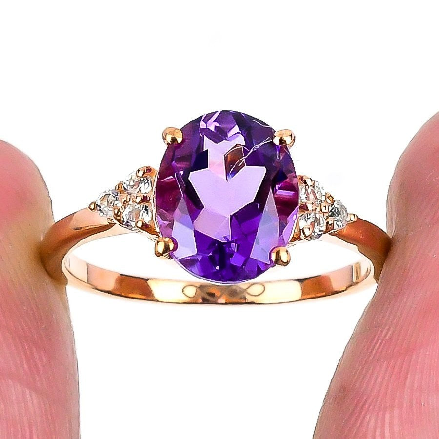 Daughters Day Deal Pink Amethyst Stone Solid Sterling Silver Statement Ring US 8