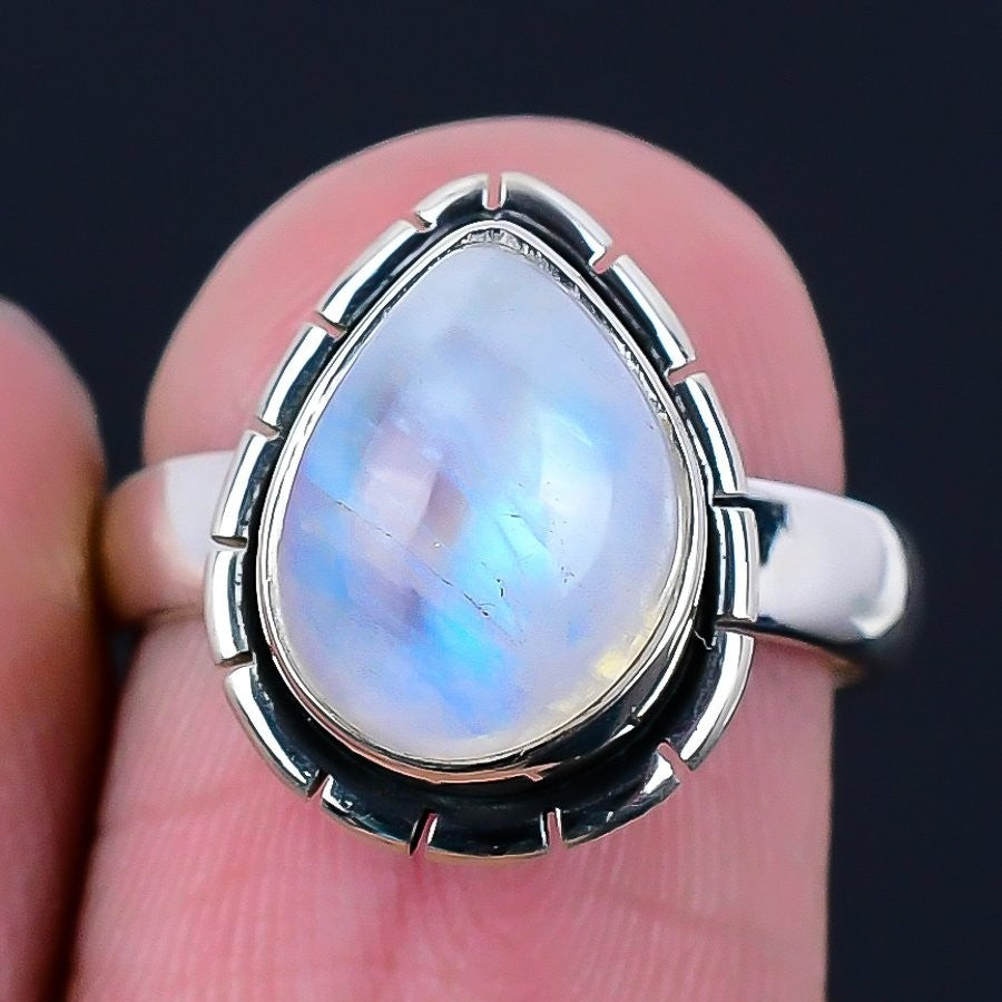 Daughters Day Deal Rainbow Moonstone Stone Solid Silver Statement Wife Ring US 6