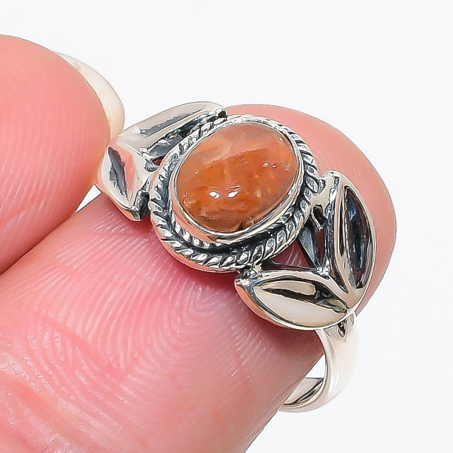 Daughters Day Deal Sacral Chakra Sunstone Stone 925 Solid Silver Cluster Ring