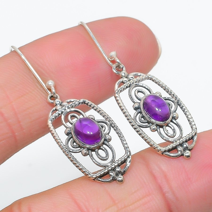 Daughters Day Deal Sage Amethyst Stone 925 Sterling Silver Wife Dangle Earrings