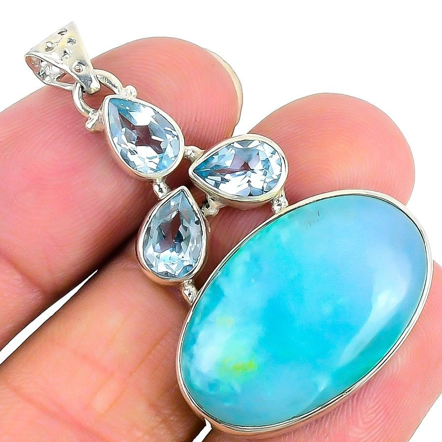 Daughters Day Sale Amazonite Stone Solid Sterling Silver Bezel Pendant Jewelry