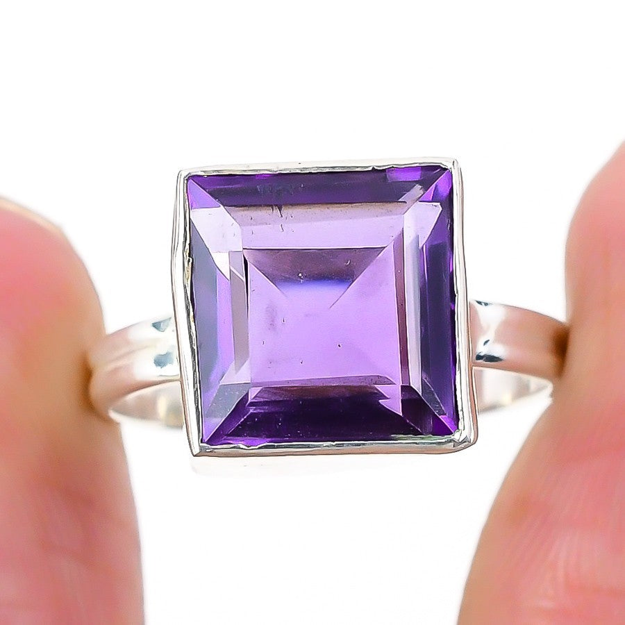 Daughters Day Sale Amethyst Stone 925 Solid Silver Statement Boho Ring Size 9.5
