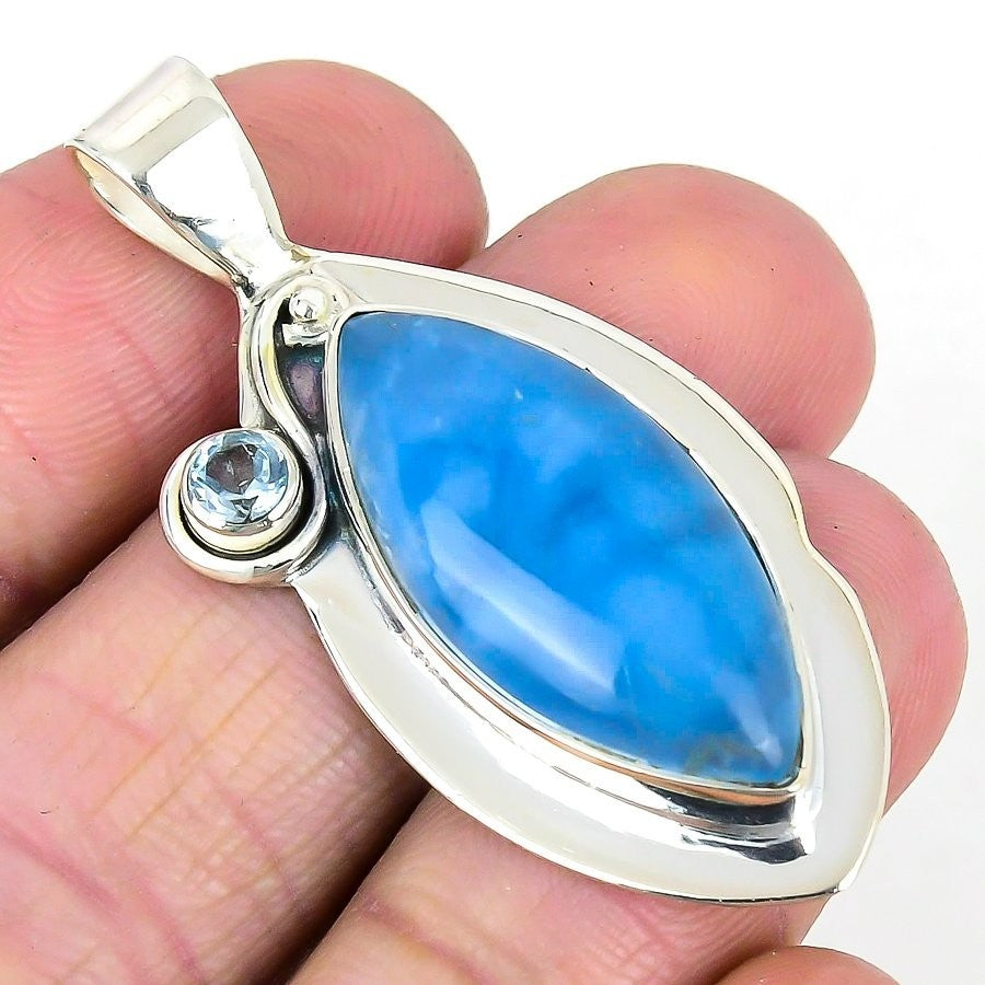Daughters Day Sale Aquamarine Stone Anniversary Artisan New Pendant 925 Silver