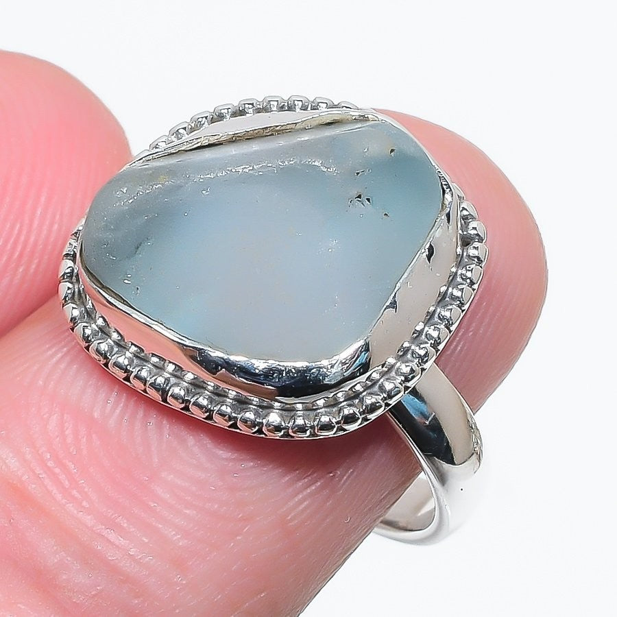 Daughters Day Sale Aquamarine Stone Solid Silver Statement Ring Jewelry Size 9